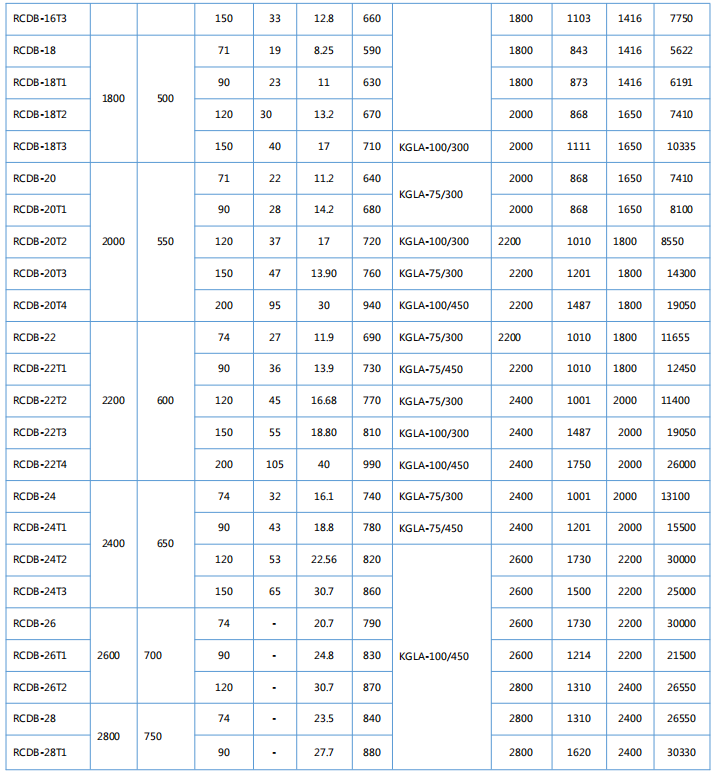 ◇—適用輸送機(jī)帶寬,單位dm