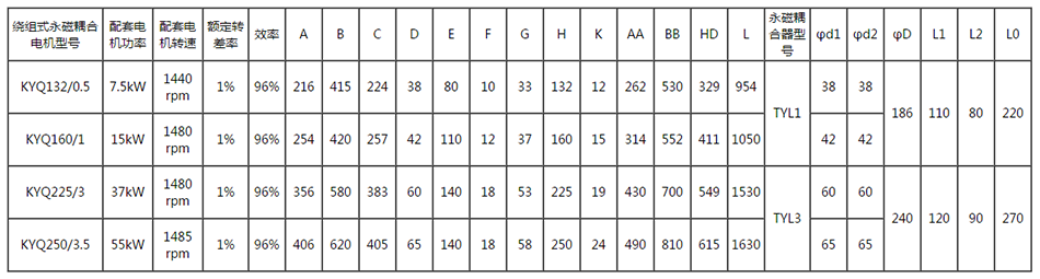 四、(輔)繞組永磁耦合調(diào)速電機(jī)主要技術(shù)參數(shù)